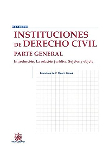 . Sujetos y Objeto de Blasco Gascó, Francisco de P. y una selección similar de Comprar el libro Instituciones de Derecho Civil : Parte General: Introducción. La